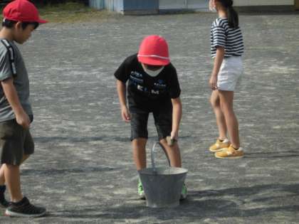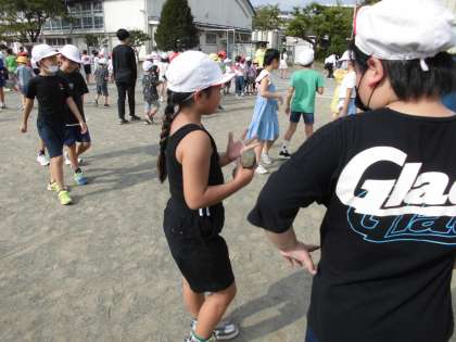 運動会前に、全校集会で石を拾いました。