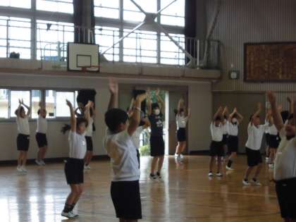 動きの激しい踊りを、力の限り出し切って頑張る子どもたち
