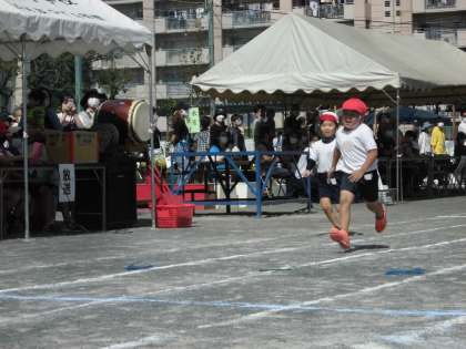 ピストルの音にもちょっと驚いてしまう子どもたち...
