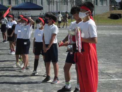 今年は紅組の優勝です。子どもたちは、一生懸命がんばりました。