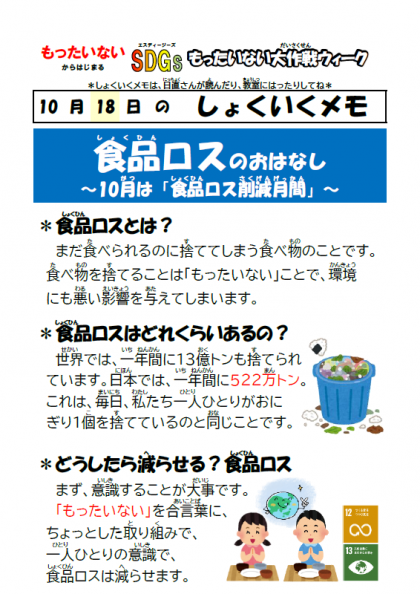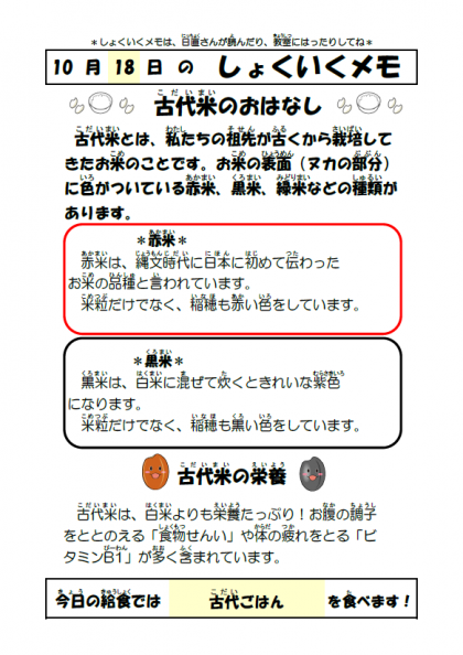 ☆きょうのこんだて☆ 10月18日(火)