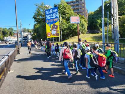 クラスごとに並んで小宮公園を目指します。