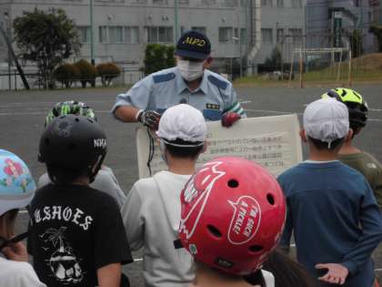 警察の方が来てくださり、3年生は自転車の学習をしました。