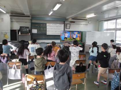 動画を見ながら、身体を動かし楽しそうにうたいました。