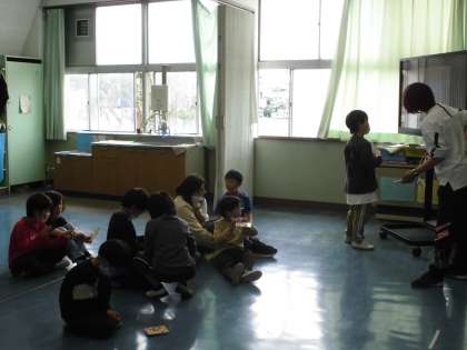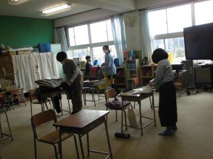 修了式後、各クラスではあゆみをもらったり、話し合いをしていたり