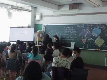 修了式後、各クラスではあゆみをもらったり、話し合いをしていたり