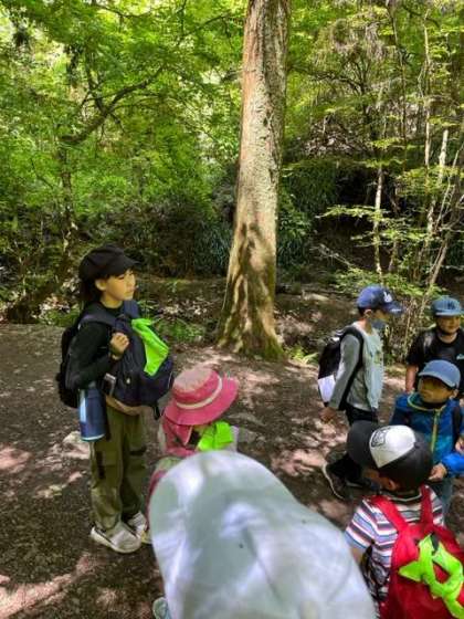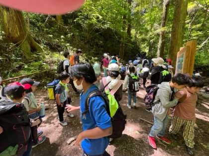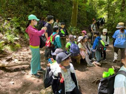 山頂は、もう少し。そこで最後の難関。子どもたち曰く「地獄の階段」