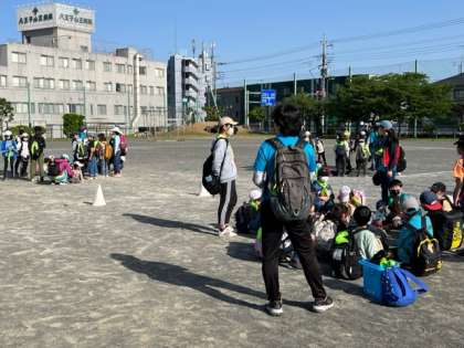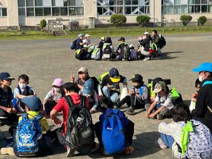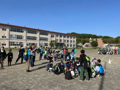 帰校して振り返りの様子です。縦割り班ごとによく協力して頑張りました。上級生と下級生がそれぞれの立ち位置で役割を果たすことができ、満足感を味わえた全校遠足でした。