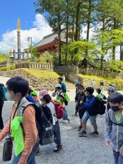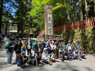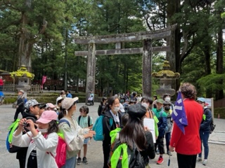 輪王寺、石の鳥居、五重の塔の説明を受けました。