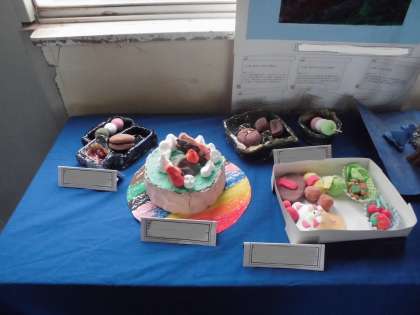 家庭科の作品は、5、6年生全員分を展示しました。