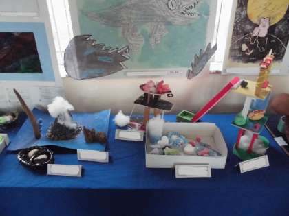 おおるり展に出展した作品が返ってきたので、校内に展示しました。