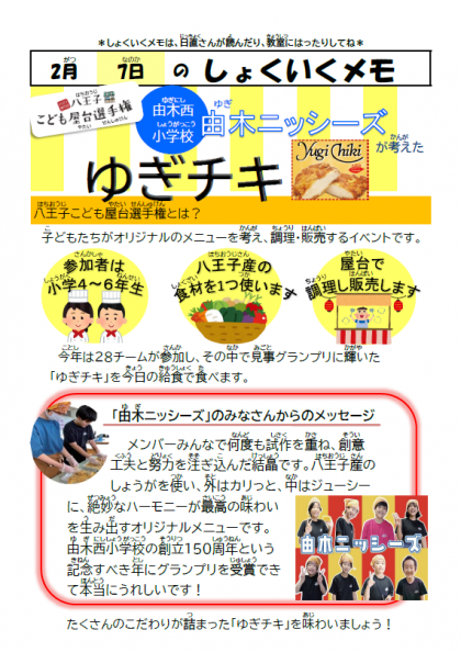 八王子こども屋台選手権でグランプリに輝いた「ゆぎチキ」を美味しくいただきました。柚木西小学校の「柚木ニッシーズ」の皆さんが考えたオリジナルメニューでした。