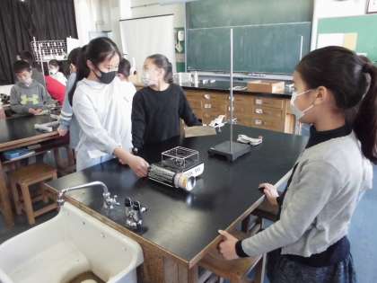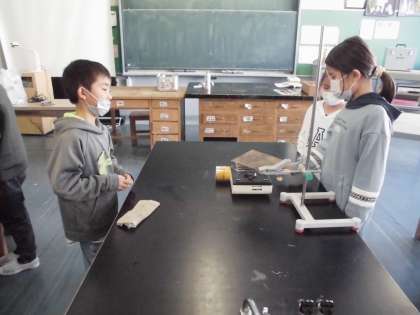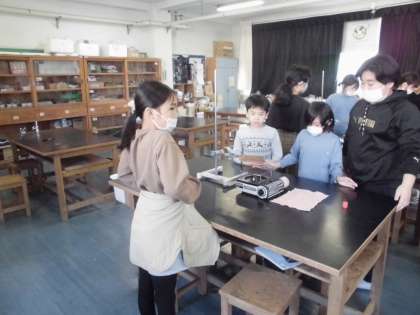 金属や液体をコンロで温め、どのように熱が伝わるか観察します。