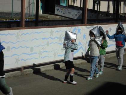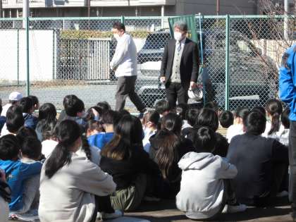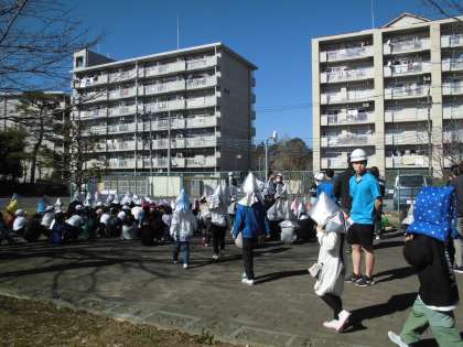 避難場所は校庭ではなく、ふれあい広場になりました。