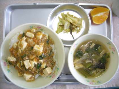 今日は毎年、残菜の残らないメニューにランクインする、“マーボー丼”