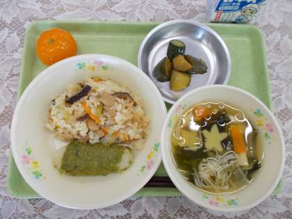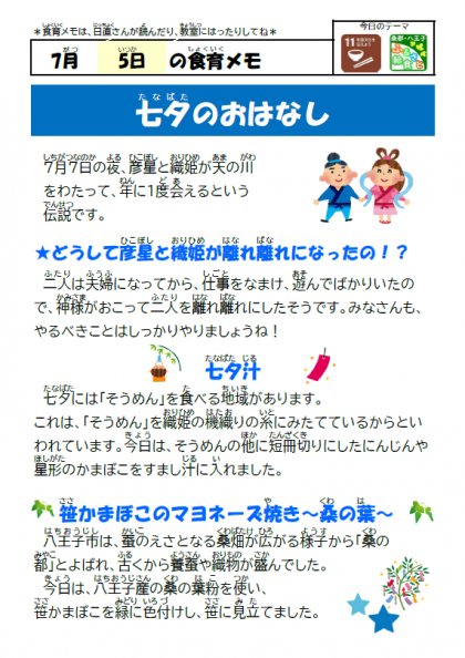 七夕の行事食献立でした。七夕汁には、★の形の蒲鉾が入っています。