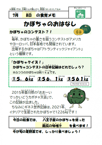 旬の食材「かぼちゃ」を南瓜の味噌汁で美味しくいただきました。南瓜の味噌汁は、校長先生の元気応援メニューでもありました。