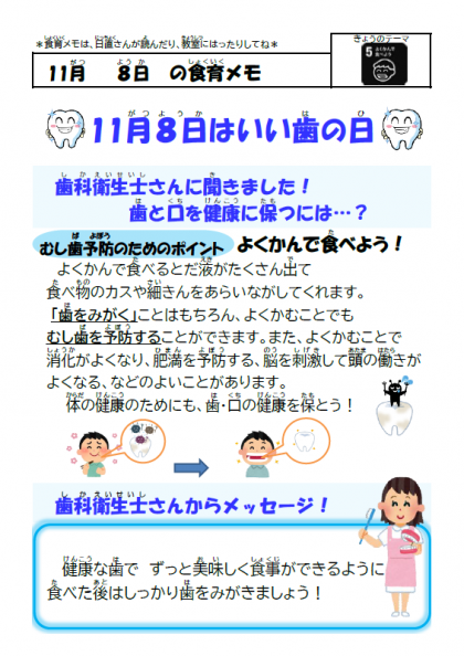 11月8日は「いい歯の日」です。よくかんで食べましょう!