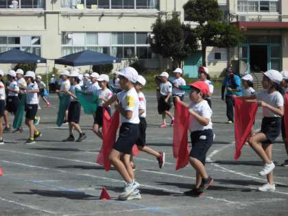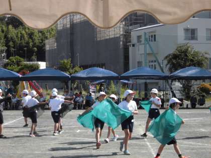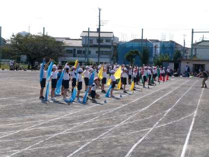 3、4年生は、オリンピックカラーの布を使っての表現です。