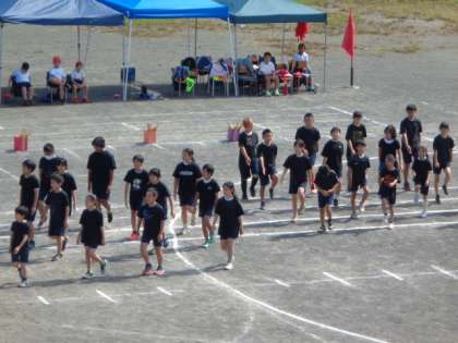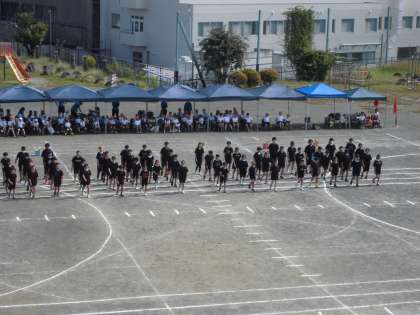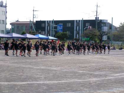 心を一つにして、ぶつからないように、きれいに行進しました。