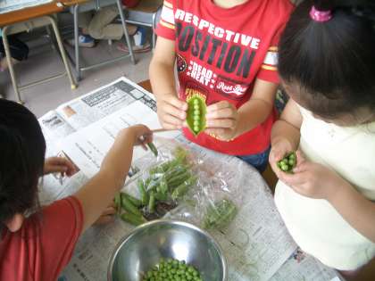 他の学年にも、お昼の放送で「2年生が一生懸命むいてくれたグリンピース、