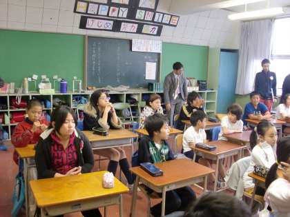 廊下を通る4,5年生も興味津々で、のぞき込んでいました。