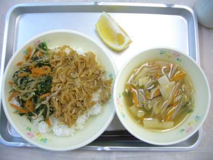 今日の給食は“ビビンバ”です。「ビビンバ」は韓国・朝鮮料理で、