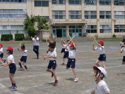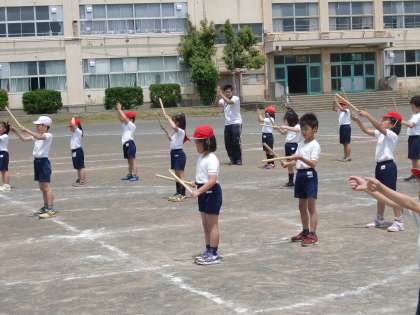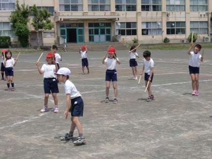 校庭での練習