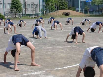 校庭での練習
