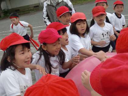 みんな、頑張っていてとても楽しい運動会になりそうなのですが、残念ながら、児童数が少ないです。「あっ」という間に終了してしまいます。大玉が落ちたり、逆方向に戻されたりしながら勝負を楽しむのですが、あっさりと終わってしまいます。