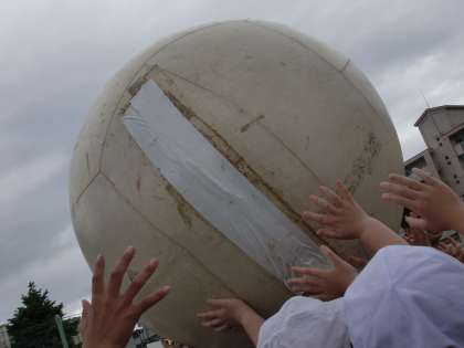 大玉は、だいぶ古いもので、ガムテープであちらこちら補習されていました。