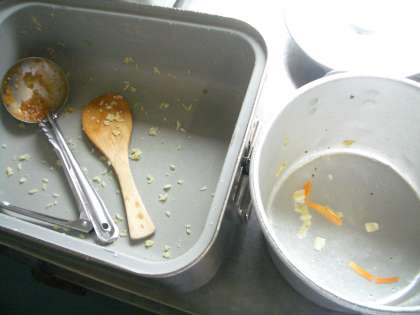 たくさんの野菜を使った、手作りドライカレーは、どの学年もほぼ