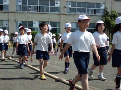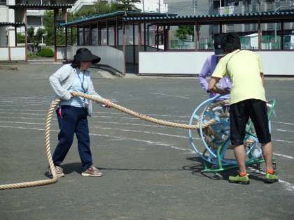 晴れ渡った空の下で、本日の全体練習は「綱引き」を中心に行いました。(種目によって様々な待機場所があり、子供たちも一つ一つ覚えなければならず、たいへんです)綱は昨年度購入したばかりで、新品同様です。