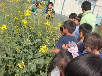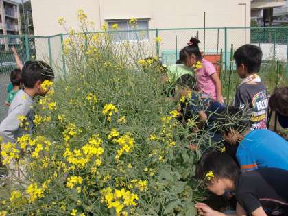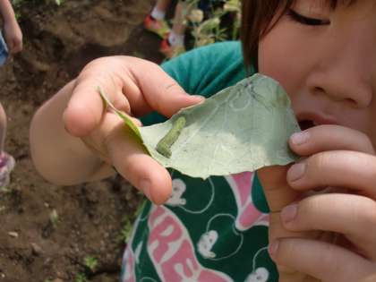 理科の学習で、チョウのたまごや青虫を探しにやってきました。
