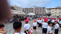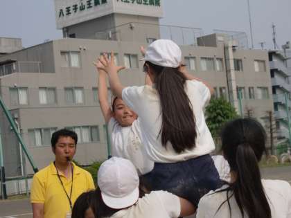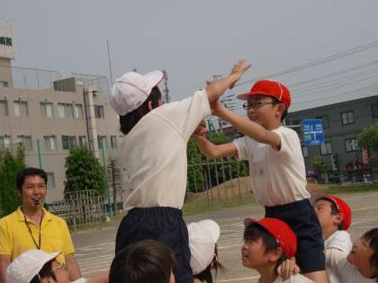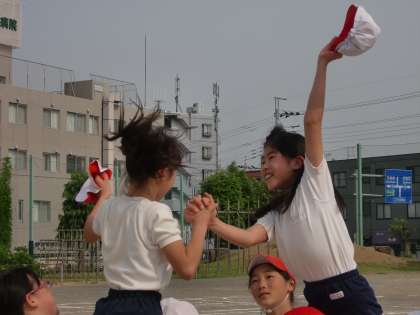 どちらが素早く相手の帽子を取るか。腕を互いにつかみ合っているのでは取れません。