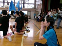 体育館に響き渡る元気な声!校庭とは違った迫力ある応援合戦でした。