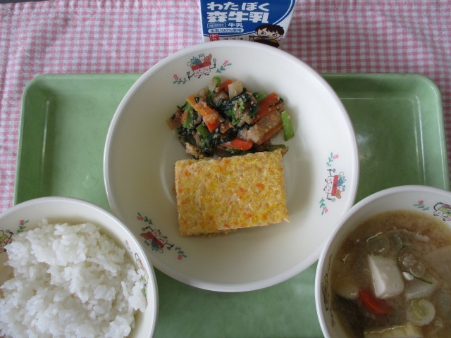 【本日の献立】天狗ごはん高尾焼もみじあんかけ山の幸和え翠藹汁(すいあいじる)牛乳...