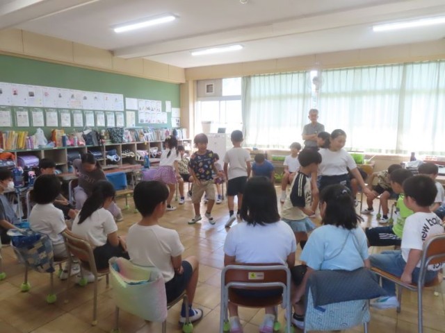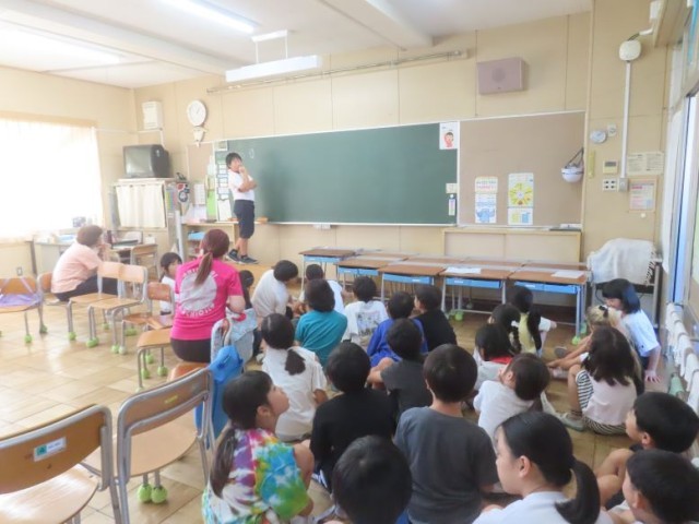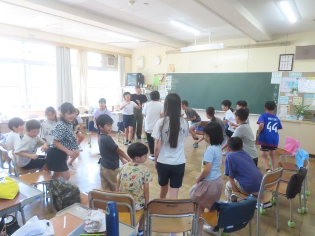 金曜日はロング昼休みです。今日は、縦割り遊びをしました。校庭での遊びを予定していましたが、暑さのため、急遽室内での遊びに変更しました。1・6班、2・5班、3・4班が一緒に遊びました。6年生が遊びの説明をし、皆が楽しく遊べるようにしていました。
