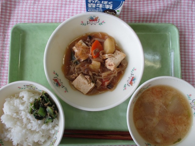 今日の給食では、有機冬瓜を使ったみそ汁をいただきます。