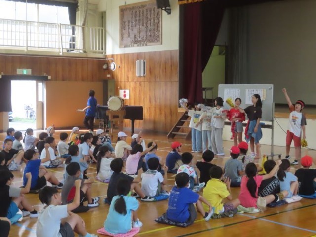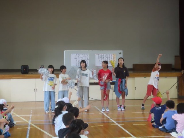 今朝の音楽朝会では、赤白に分かれて「運動会の歌」を歌いました。6年生が前に立ち、盛り上げていました。練習1回目はあまり元気がない歌声でしたが、練習2回目はよく声が出ていました。当日は、今日よりも頑張って校庭でもよく聞こえるように歌うことでしょう。