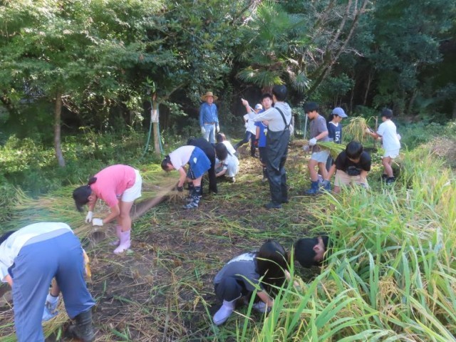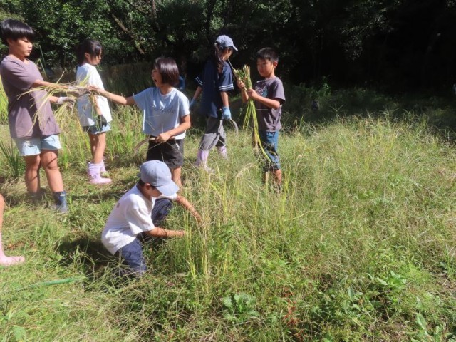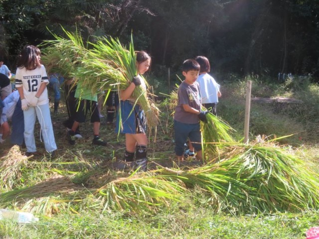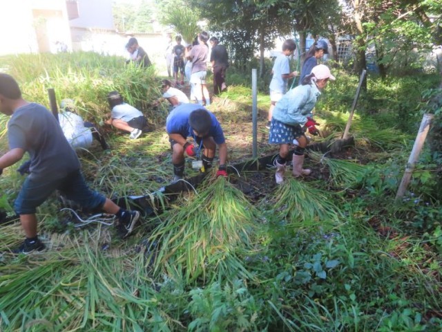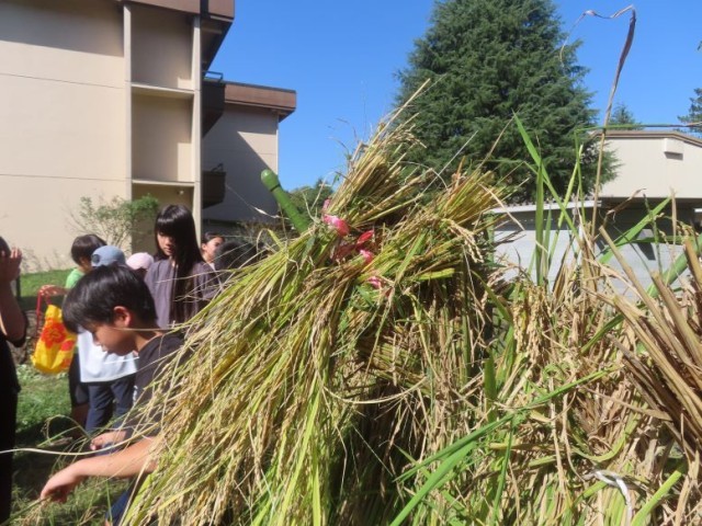 今回も、学校運営業議会の方、おやじの会の方のご協力で、稲刈りを行うことができました。ありがとうございました。