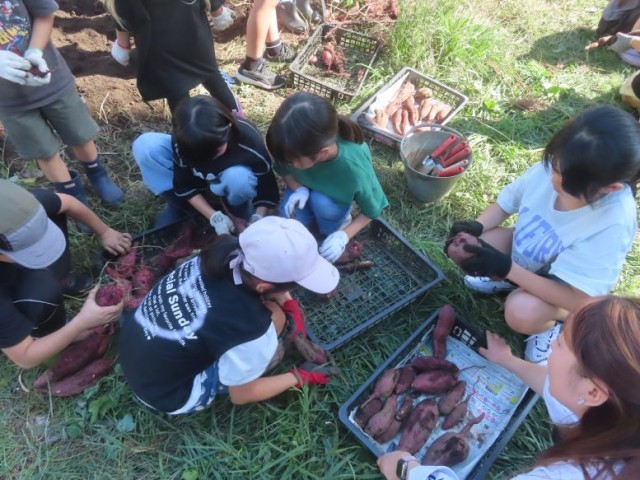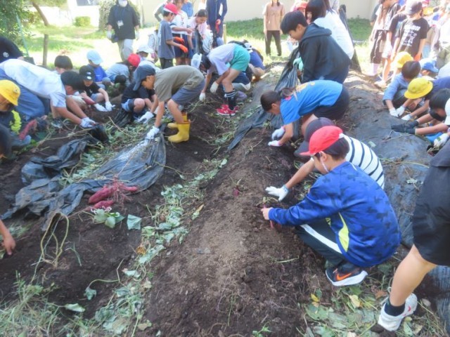 夏の暑さがどのように影響するか心配でした。昨年度より、大きなさつまいもは少ないように思いますが、何とか児童一人ひとりが食べることはできそうです。