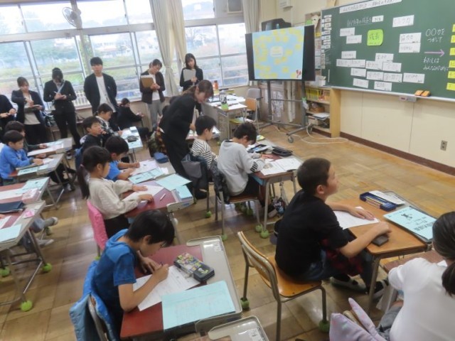 10月22日(水)、小学校教育研究会 特別活動部の研究会が本校で行われました。研究授業の授業者は本校3年1組の担任の先生です。「みんなの成長物語~運動会のその先へ~」を題材とした学級活動でした。多くの先生が参観する中、子どもたちもよく頑張っていました。研究授業後には体育館で協議会、講演会が行われました。講師のなかよし幼稚園園長 清水弘美先生から今日の授業についてお褒めの言葉をいただきました。授業についての考え方やキャリア教育についてもご指導いただきました。ありがとうございました。