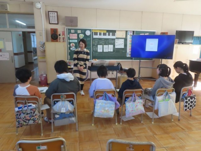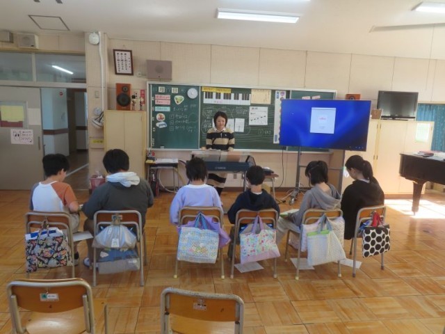 6年生が音楽で、旋律を聞き、旋律に合う和音について学習しました。難しいようでしたが、旋律と作った和音の響きを聞きながらよく考えていました。