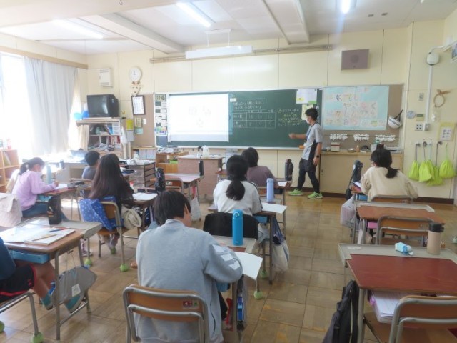 5年生が算数で「単位量あたりの大きさ」の学習が始まりました。今日は、混み具合について考えました。人数や畳の枚数のどちらかが同じならば、すぐにわかります。両方とも異なる数の時は、どのようにすれば比べることができるのか。よく考えていました。