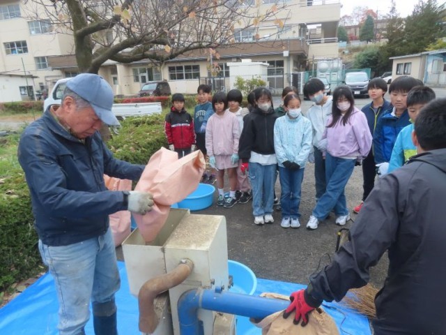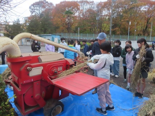 今年は収穫量が多かったため、脱穀だけでも時間がかかりました。脱穀やもみすりで使った機械は数十年前から使っているもので、調整しながら行っていました。5年生は事前に手作業で脱穀ともみすりを行っていたので、違いを実感したことと思います。