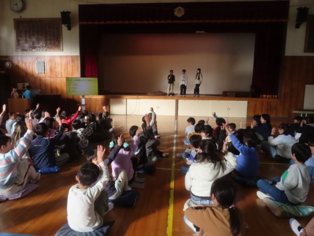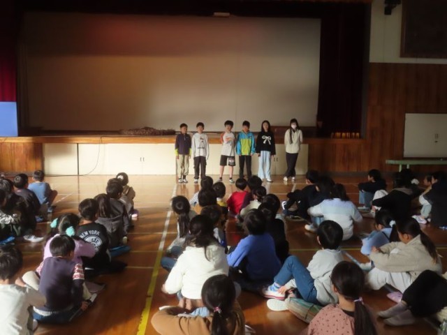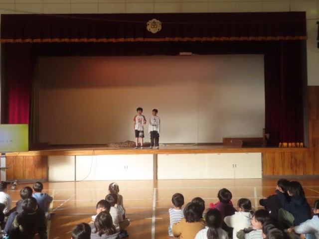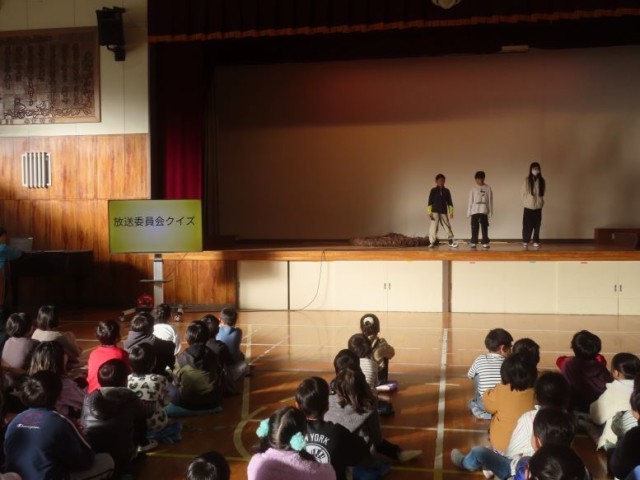 今日の児童集会は、放送委員会集会でした。ニュースやコマーシャル、クイズ、インタビューなど、全校児童が楽しめるように工夫していました。