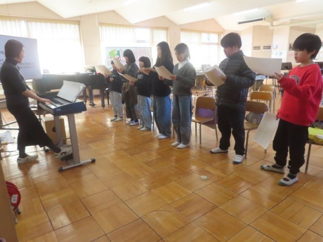 6年生が音楽の学習で、卒業式の歌の練習をしました。自分たちで選んだ歌です。思いを込めて歌うことでしょう。