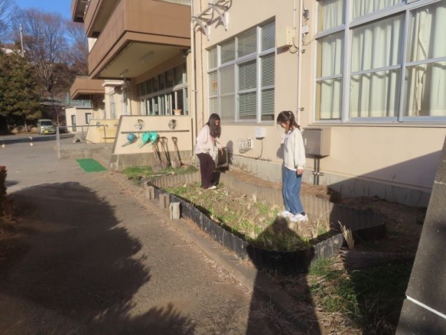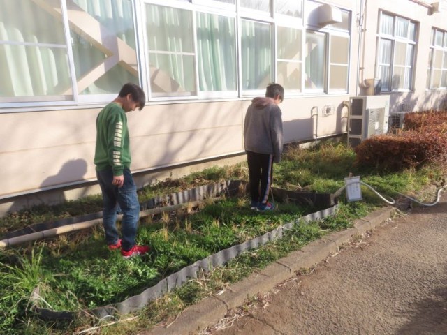 5年生は全校集会の後、稲を育てていた場所に行き、麦踏みをしました。麦踏みには、根張りを良くする、凍霜害を軽減するなどの効果があると言われています。収穫量が増えることを願います。