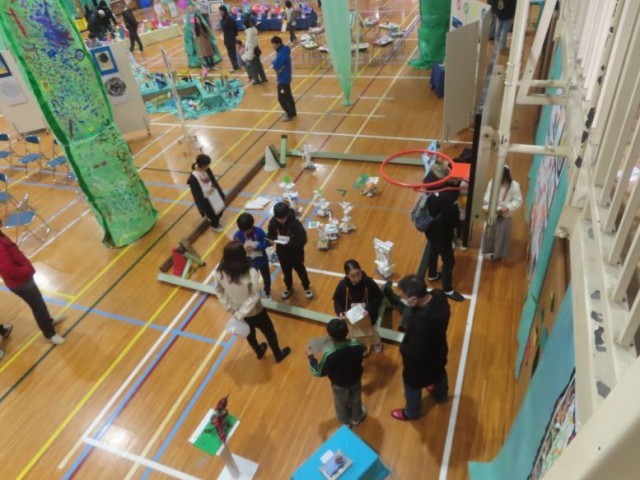 森の中山作品展2日目 保護者鑑賞日です。朝早くから、保護者の方、地域の方がご覧くださっています。今日は1校時に3・6年生、2校時に4・5年生が子どもガイドで作品の紹介や作品に込めた思いを伝えます。